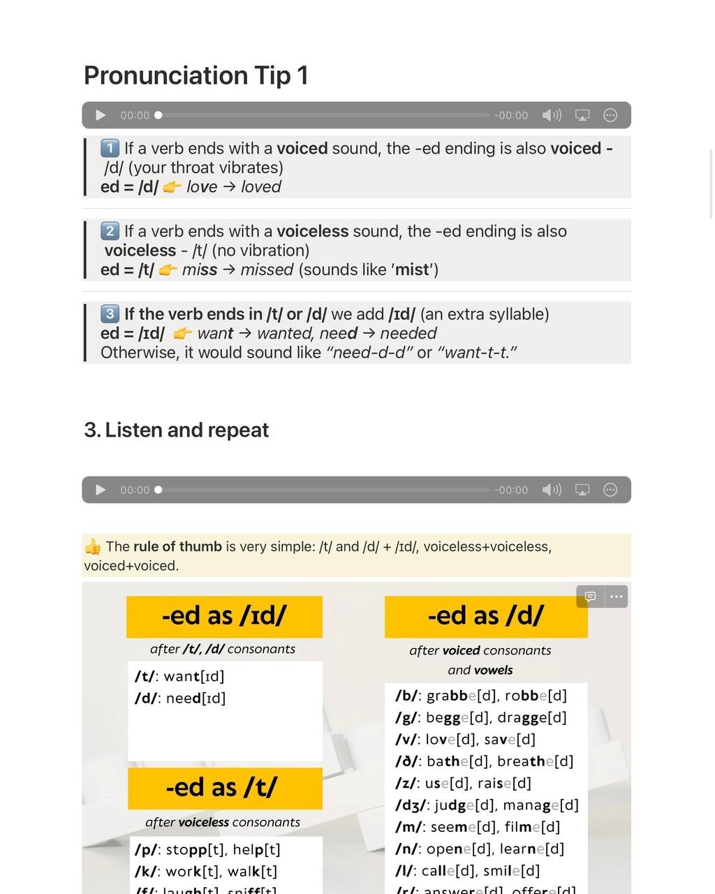 - Test themselves by spotting and trying to correct pronunciation mistakes in past tense verbs.
