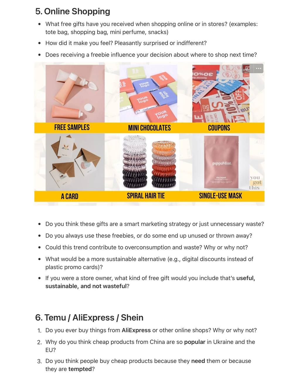 - Share experiences with online shopping, freebies, and cheap mass-market platforms.